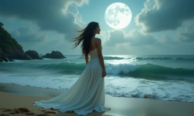 She simply stood barefoot on the sand, letting the waves remember her.